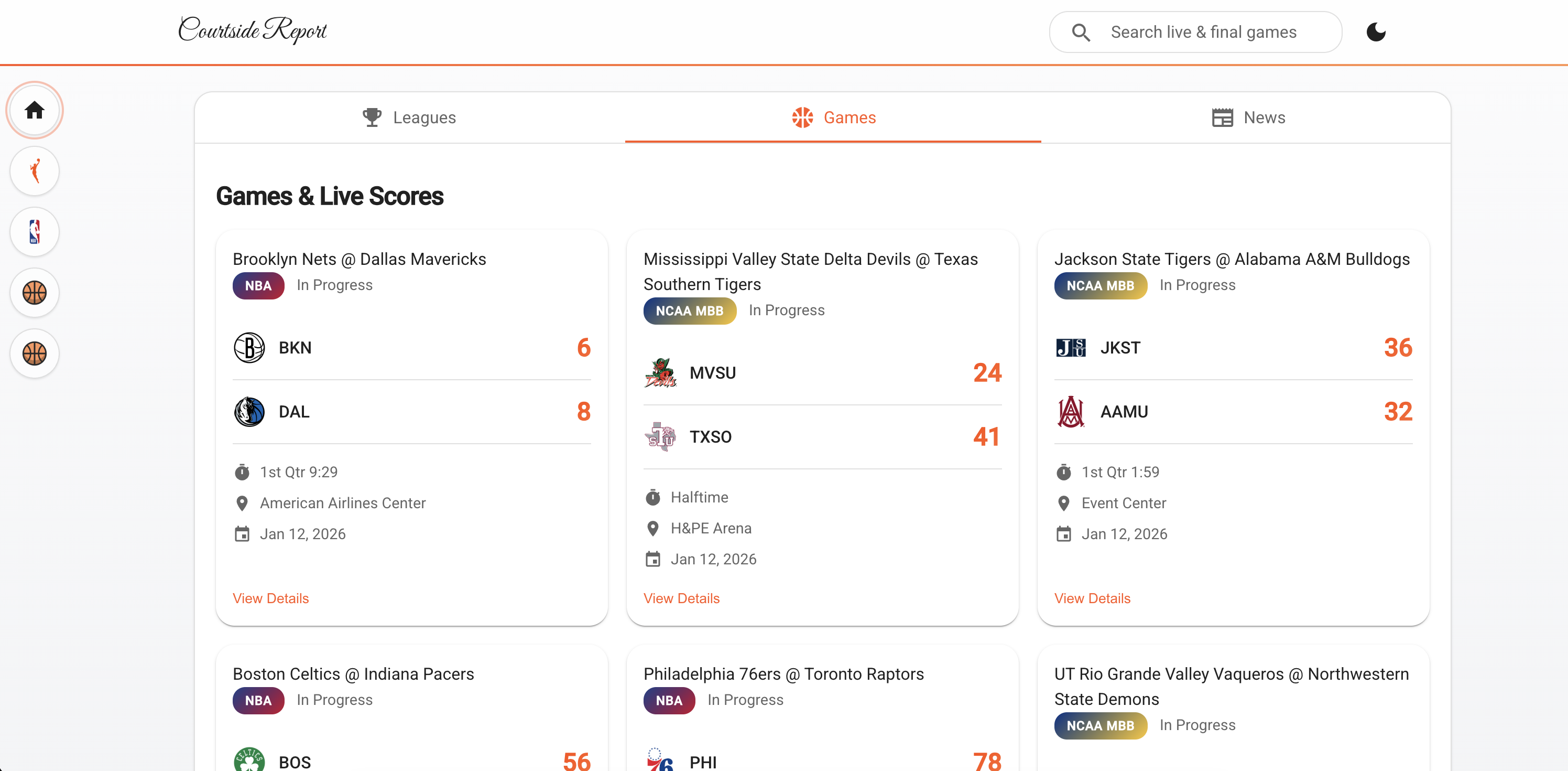 A web application for tracking basketball statistics across multiple leagues including WNBA, NBA, NCAA Women's Basketball, and NCAA Men's Basketball.