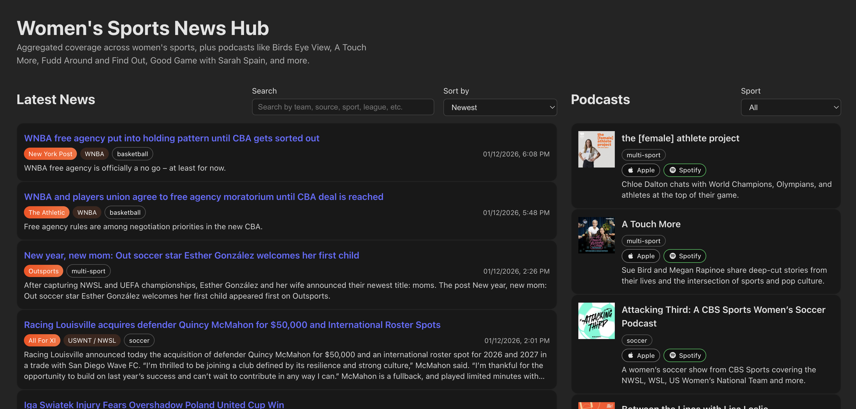 Self-made website aggregating news coverage and podcasts across women's sports.